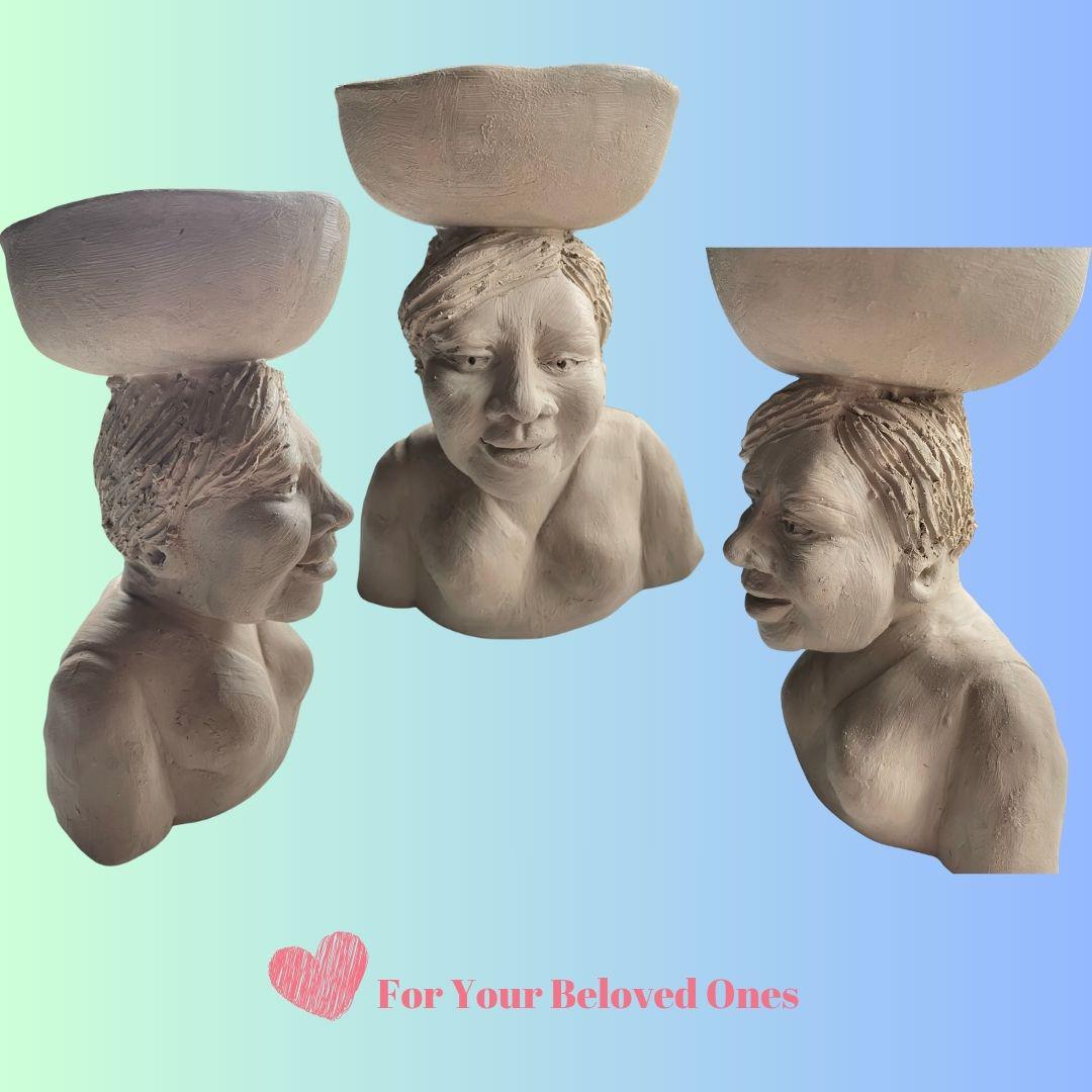 The final stage is firing: the sculpture is kiln-fired at 950°C (1742°F) over a 24-hour period, following traditional ceramic techniques. This transforms the clay into a durable ceramic artwork, ready to last a lifetime. Each piece is made with deep attention, emotion, and artistic precision — no two are ever the same.