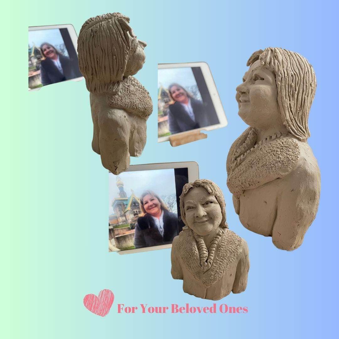Handcrafted Custom Ceramic Sculpture from Your Photo Turn your favorite portrait into a timeless ceramic artwork. Each piece is hand-sculpted, bisque-fired (first firing), and prepared for glazing or display. Perfect for anniversaries, weddings, memorials, or home décor. 🎨 Details Handmade from natural clay 1st kiln firing (bisque fired at high temperature) Based on your photo – lifelike resemblance Size: [insert size options] Ready for custom glazing or matte finish Made in Istanbul, Turkey 💌 How to Personalize Send your photo(s) and any special requests to 👉 ateliermelisarslan [!at] icloud.com Include your Etsy order number in the subject line. 🎁 Perfect Gift For Couples & families Pet memorial sculptures Art collectors Unique handmade portrait lovers