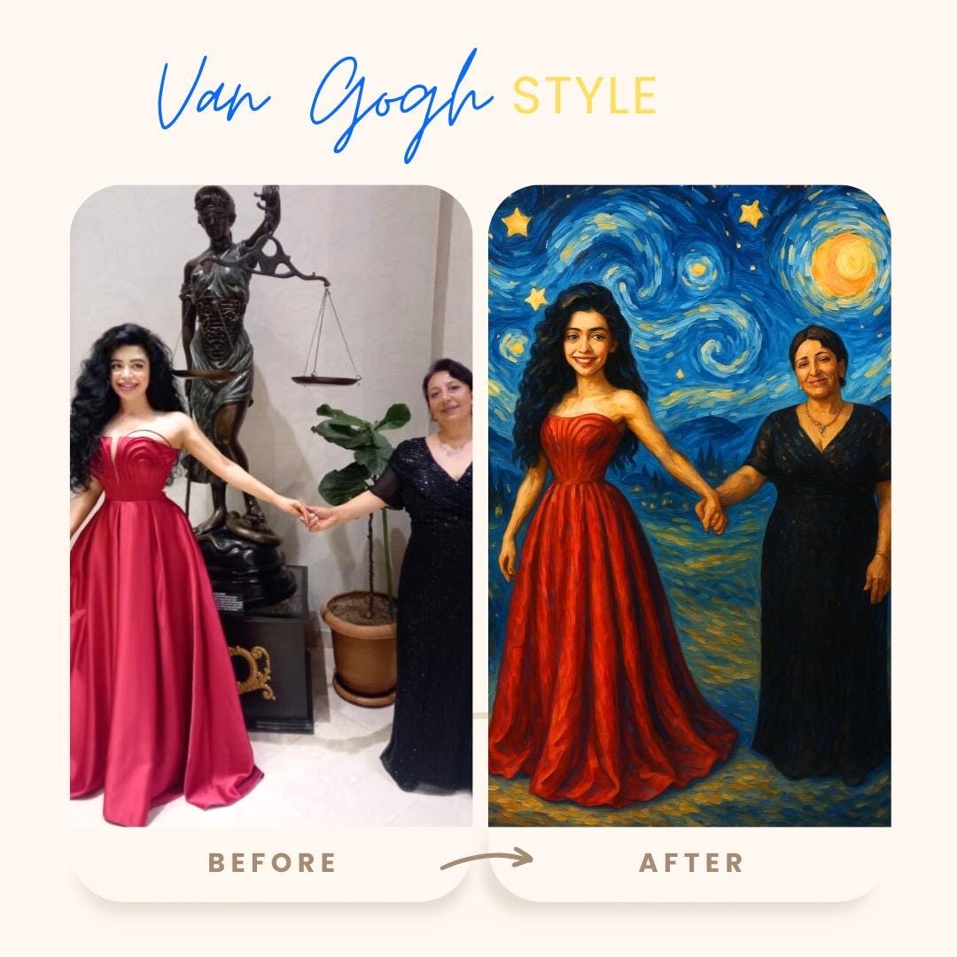 Please note: For the best results, the photo must be clear, unedited, and completely filter-free. Natural lighting and a high-resolution image help me create the most accurate Van Gogh–style portrait for you. 🎨✨💛