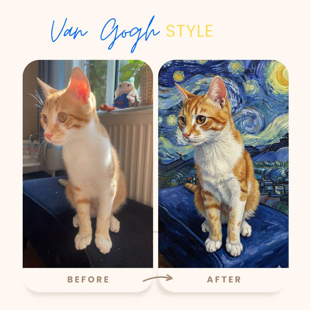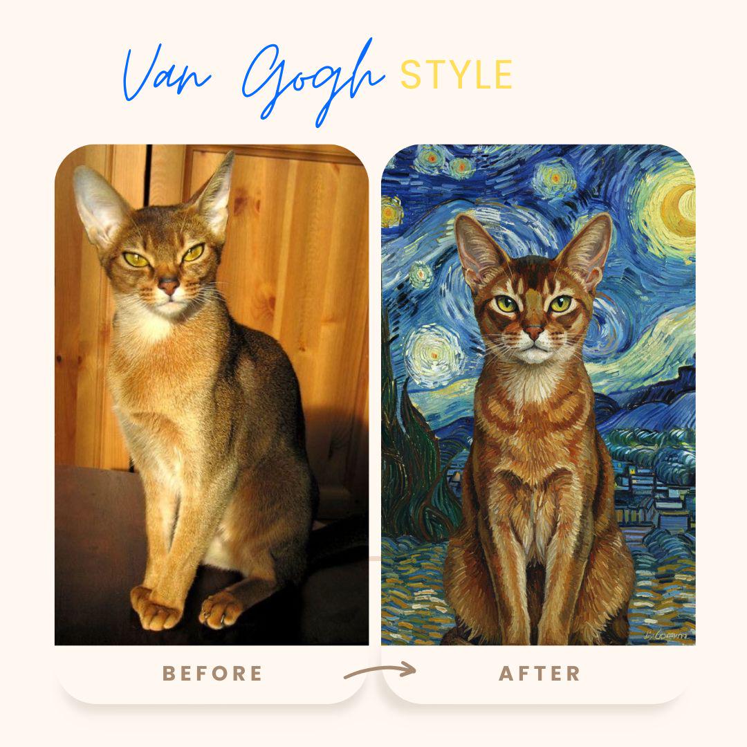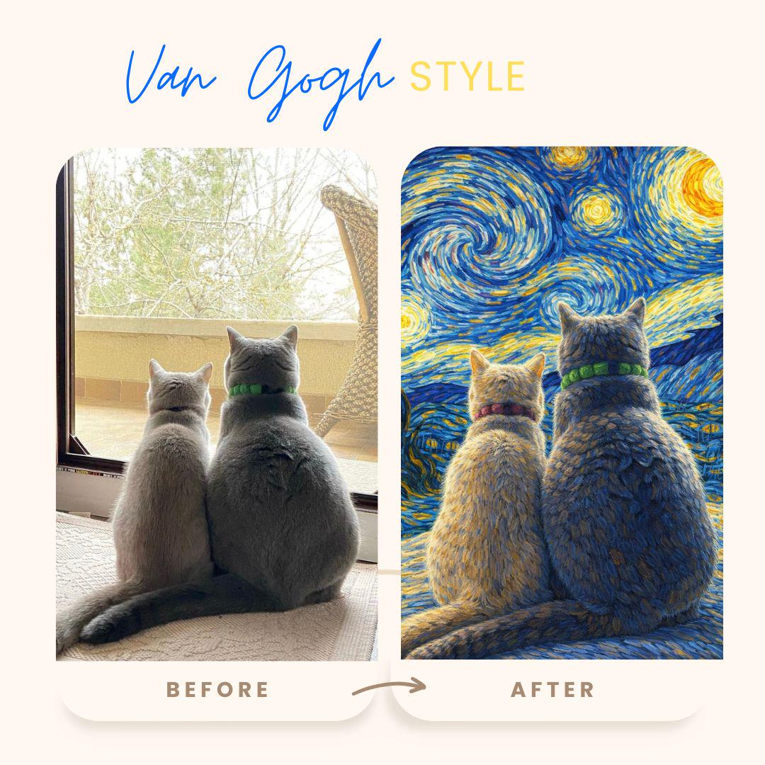 A Gentle Tribute to a Beloved Companion 🌈 This Van Gogh–style pet memorial portrait is created as a loving tribute to a companion who will always remain in your heart. Inspired by the peaceful beauty of Starry Night and the comforting symbolism of the Rainbow Bridge, this artwork honors the bond you shared in a soft, timeless, and meaningful way. Each portrait is carefully hand-illustrated from your pet’s photo — not as a filter, but as an artistic reinterpretation filled with warmth, light, and emotion. The swirling night sky, gentle glow, and painterly textures are designed to evoke comfort, remembrance, and love. This piece is created with deep care and sensitivity, offering a quiet space to remember your pet and celebrate the joy they brought into your life. ✨ What You’ll Receive High-resolution digital memorial portrait (JPG & PNG) Ready to print and frame Suitable for wall art, keepsakes, or memory albums Delivered within 2–4 days 🌌 How It Works Place your order Send me your pet’s photo via Etsy messages I create your memorial portrait with great care One gentle revision included if needed 🤍 A Few Important Notes This portrait is created with a soft, peaceful tone No dramatic or heavy imagery is used My goal is to honor your pet with kindness and respect If you have any special requests — such as subtle stars, a softer background, or a calmer color palette — please feel free to message me. I will approach your request with the utmost care.