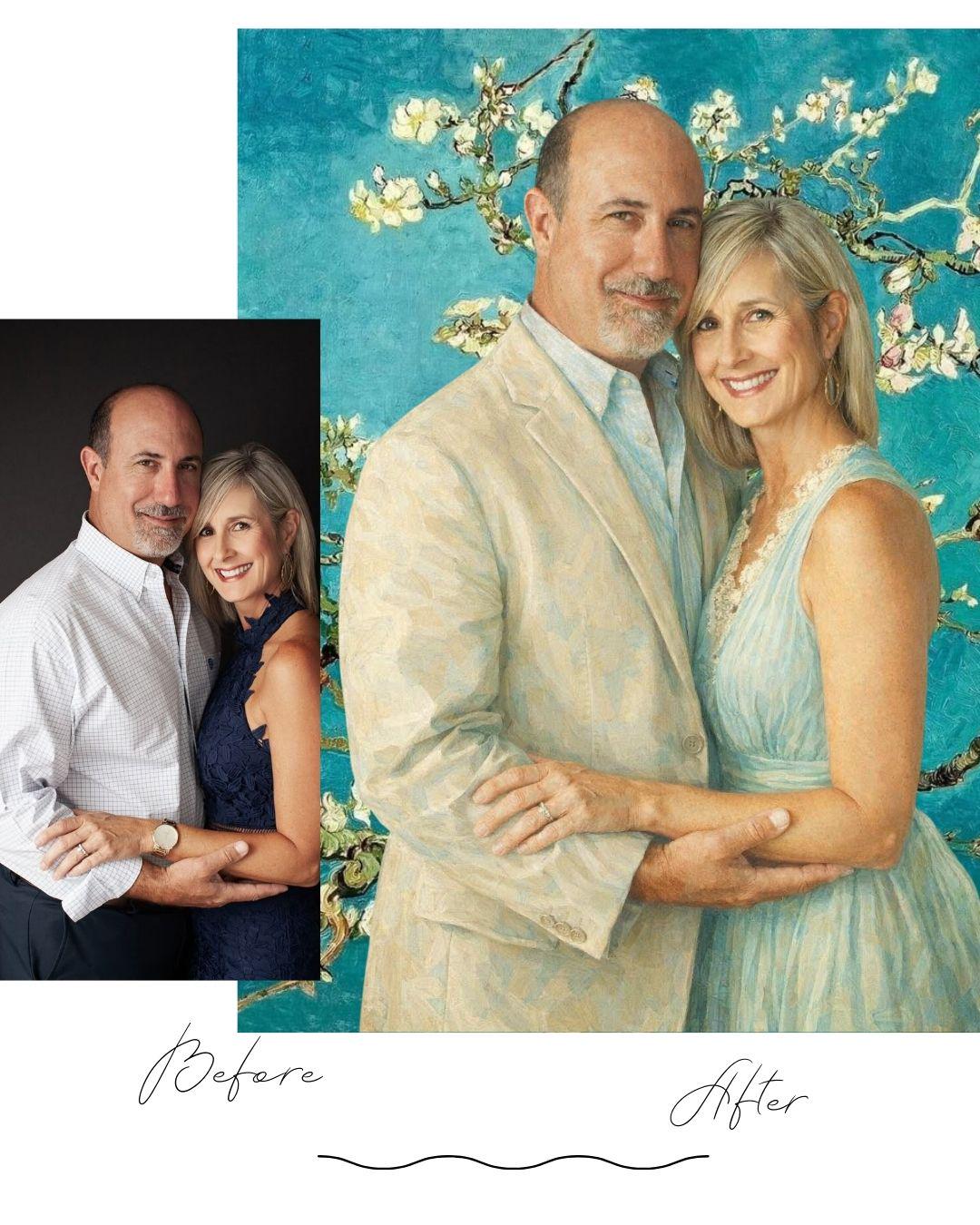 💖 Van Gogh Style Valentine Couple Portrait – Almond Blossom Edition